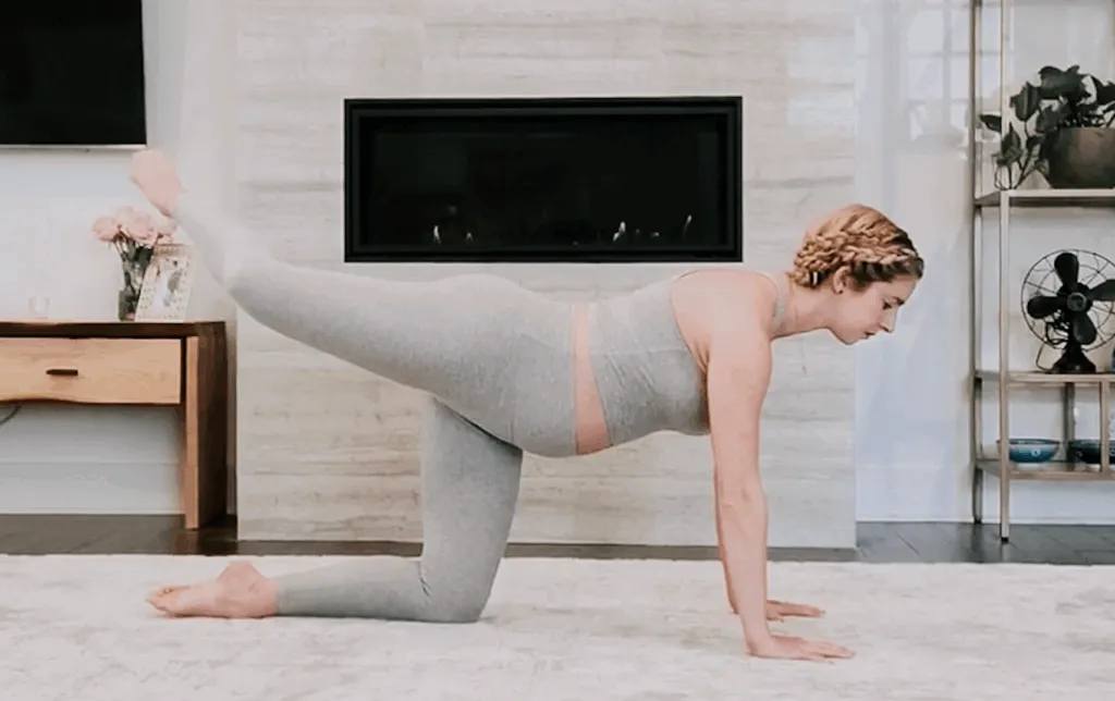 During this trimester, it’s key to choose movements that support your changing body, reduce pressure on your core, and help you stay strong without straining your core.
